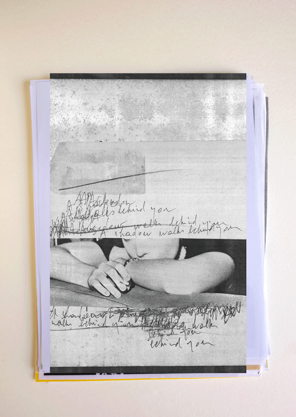 Ari gave me a stack of Xerox prints from his studio. We had some loose idea of how to hang them. Spoke on the phone several times about it.